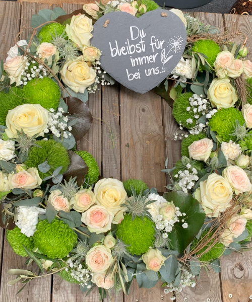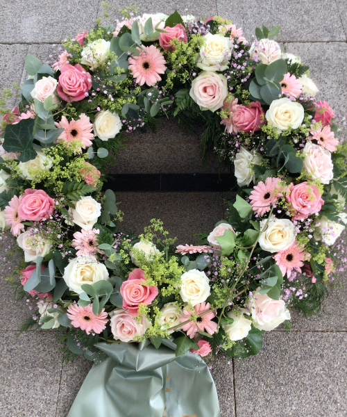 Blumen helfen, Erinnerungen auszudrücken und Abschied zu nehmen. In unserer Blumenwerkstatt fertigen wir stilvolle Trauersträuße, Kränze und Grabgestecke mit viel Sorgfalt und Feingefühl. Gerne beraten wir Sie persönlich und setzen Ihre Wünsche individuell um.