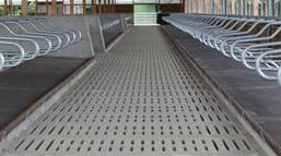 Aufgeraute Böden, Gummiauflagen oder grüne Kappen sind für einige Betonspalten lieferbar.